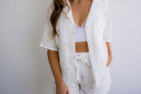 Floral Embroidered Short Sleeve Top and Shorts Set